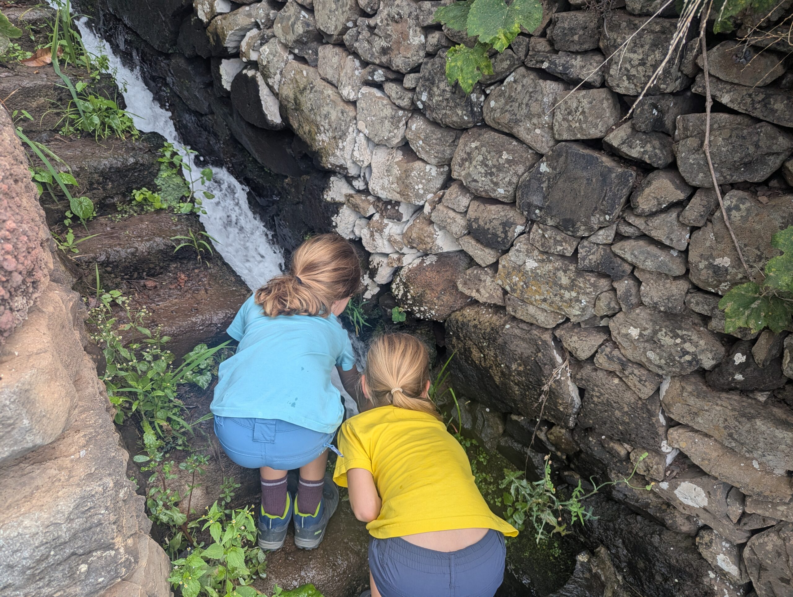 Die Kinder hörten aufmerksam zu und stellten viele neugierige Fragen. Besonders schön war ein Moment, als eines der Mädchen einen Teil einer alten Bananenblüte als kleinen „Schlüssel“ mitnahm und unterwegs Mini-Bananen sammelte, die man von den Pflanzen entfernt, weil sie nicht mehr weiterwachsen. Diese kleinen Erlebnisse machten die Tour für die Kinder besonders spannend – sie entdeckten, staunten und lernten gleichzeitig.