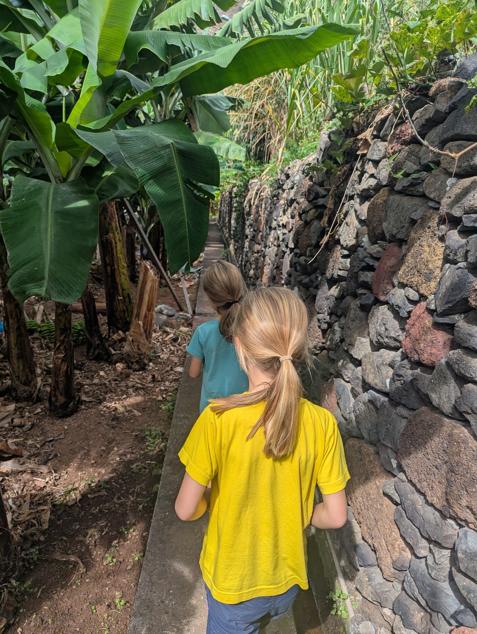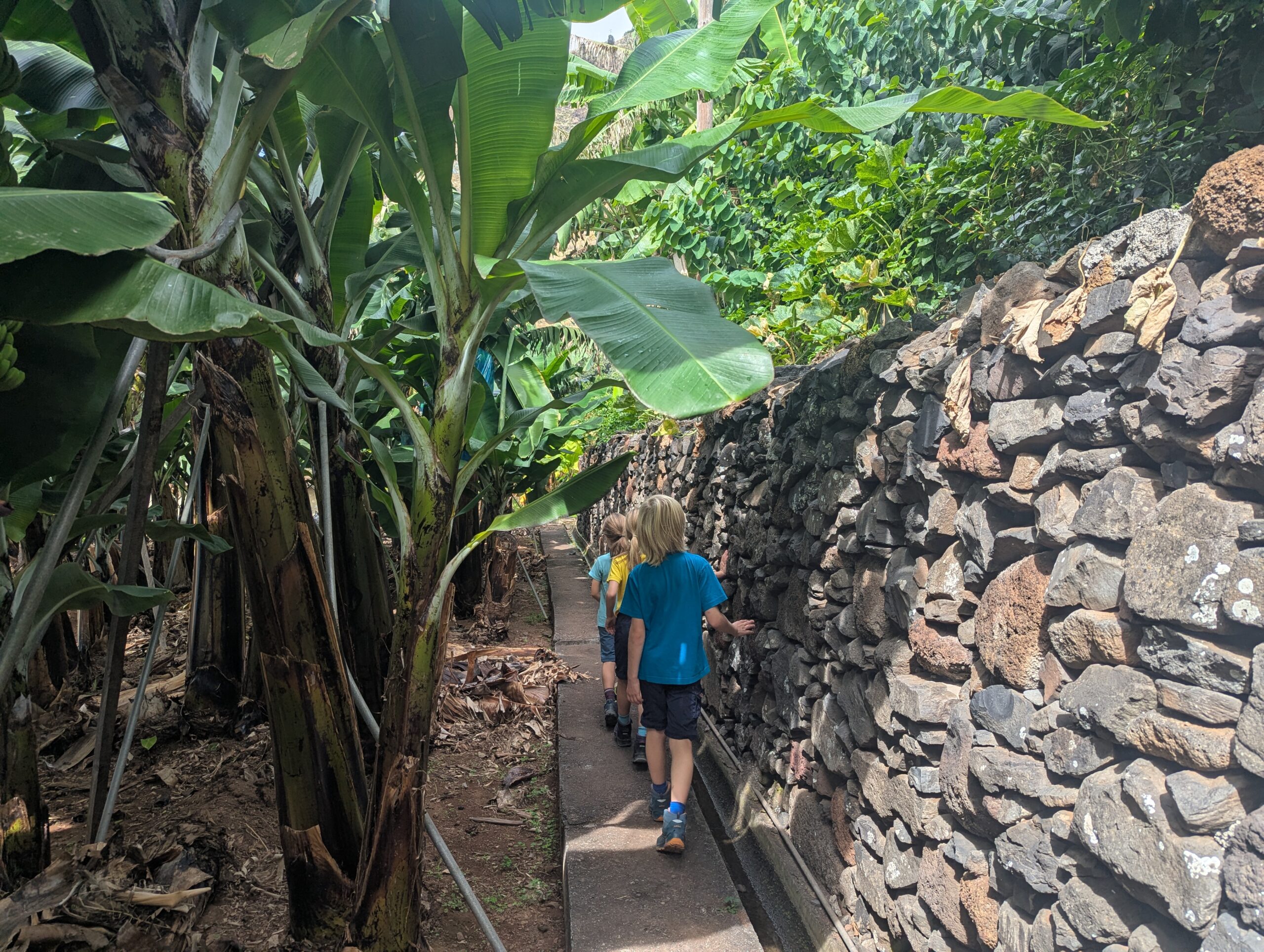 Vor kurzem durfte ich eine Familie mit drei Kindern begleiten, und gemeinsam erlebten wir einen unvergesslichen Vormittag inmitten von Palmen, Pflanzen und frischer Meeresluft. Der Weg führte uns durch kleine Gassen, vorbei an versteckten Pfaden und entlang der sattgrünen Bananenstauden, die das Bild von Paul do Mar prägen.
